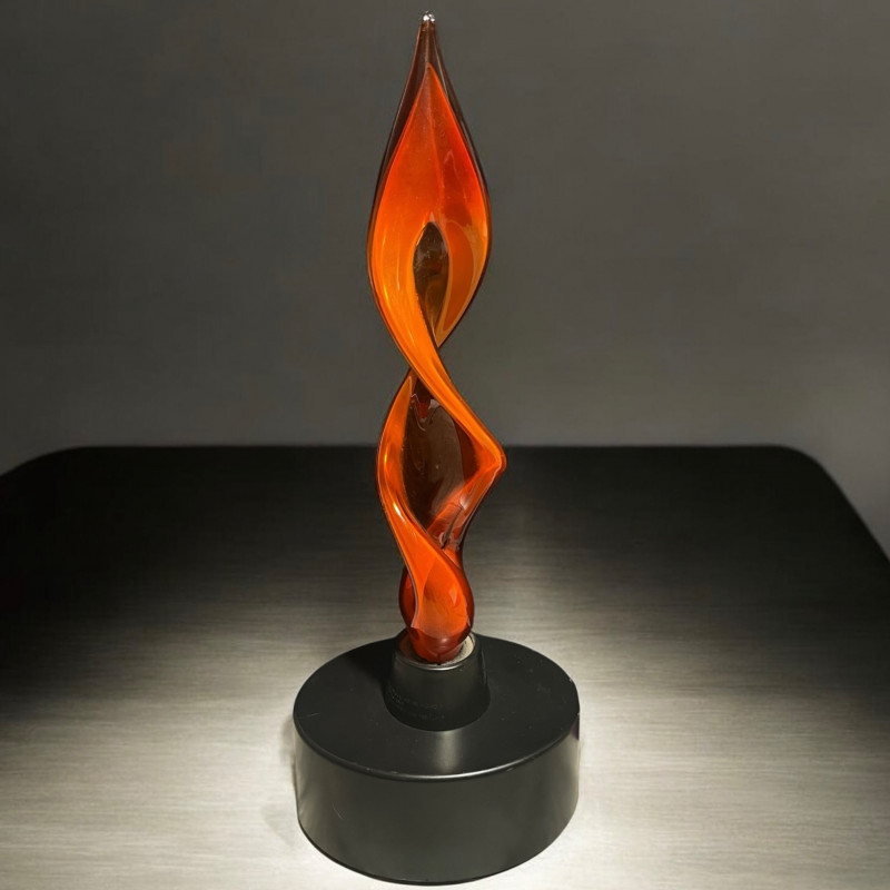 Eye-catching LumiSource Electra Plasma Lamp featuring a stunning moving flame effect inside clear sculpted glass. When powered on, vibrant electric currents dance and flicker like real fire, creating a dramatic ambient glow. A perfect retro décor piece for a home office, bedroom, or game room. Tested and working. Great collectible from the classic plasma lamp era! Works as shown in picture.