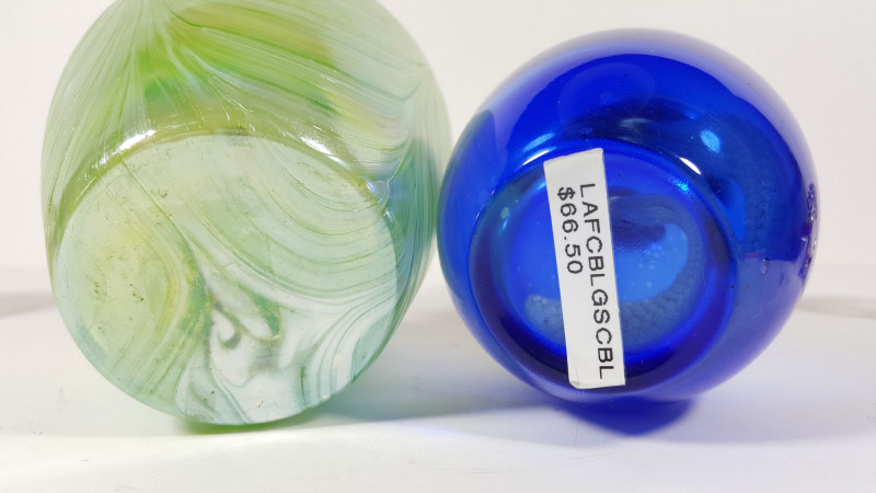 Lot # 26 - Iridescent & Cobalt Blue Art Glass Oil Lamps