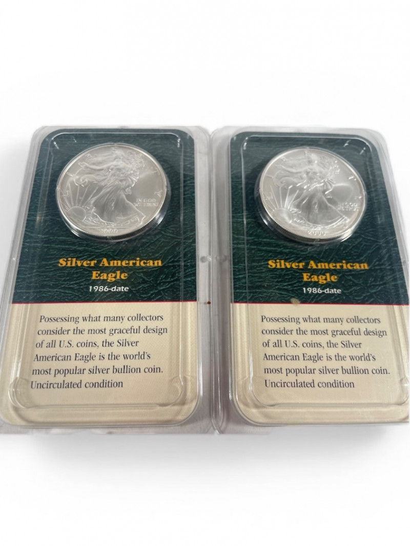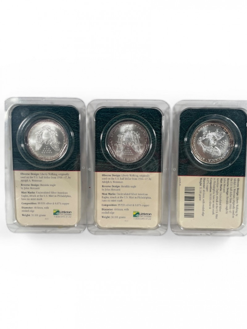 Three Silver American Eagle Dollars 1986 ×2, 1999