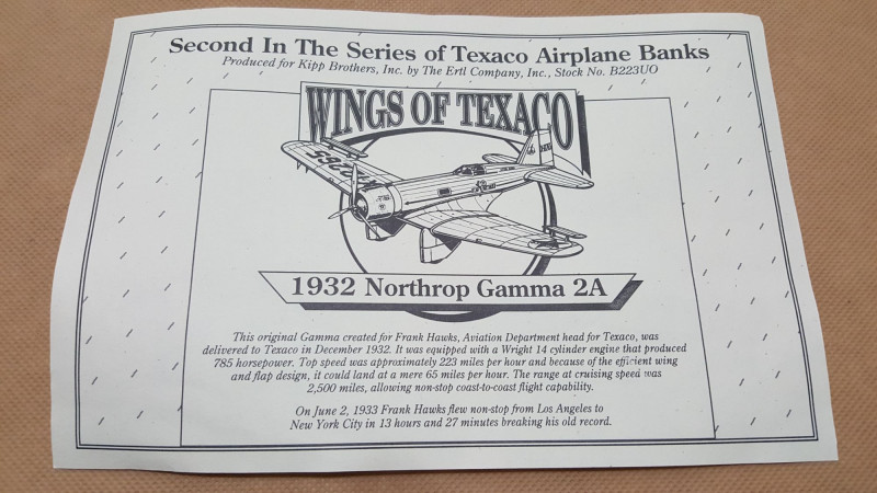 Lot # 33 - Wings Of Texico 1932 Northrop Gamma 2A Model Plane
